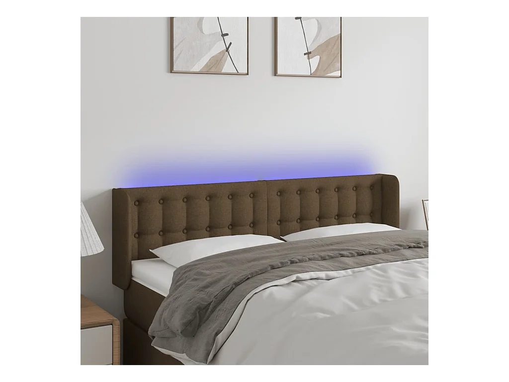 Mueble cabecero | Cabezal de cama | Cabecero con LED de tela marrón oscuro 147x16x78/88 cm