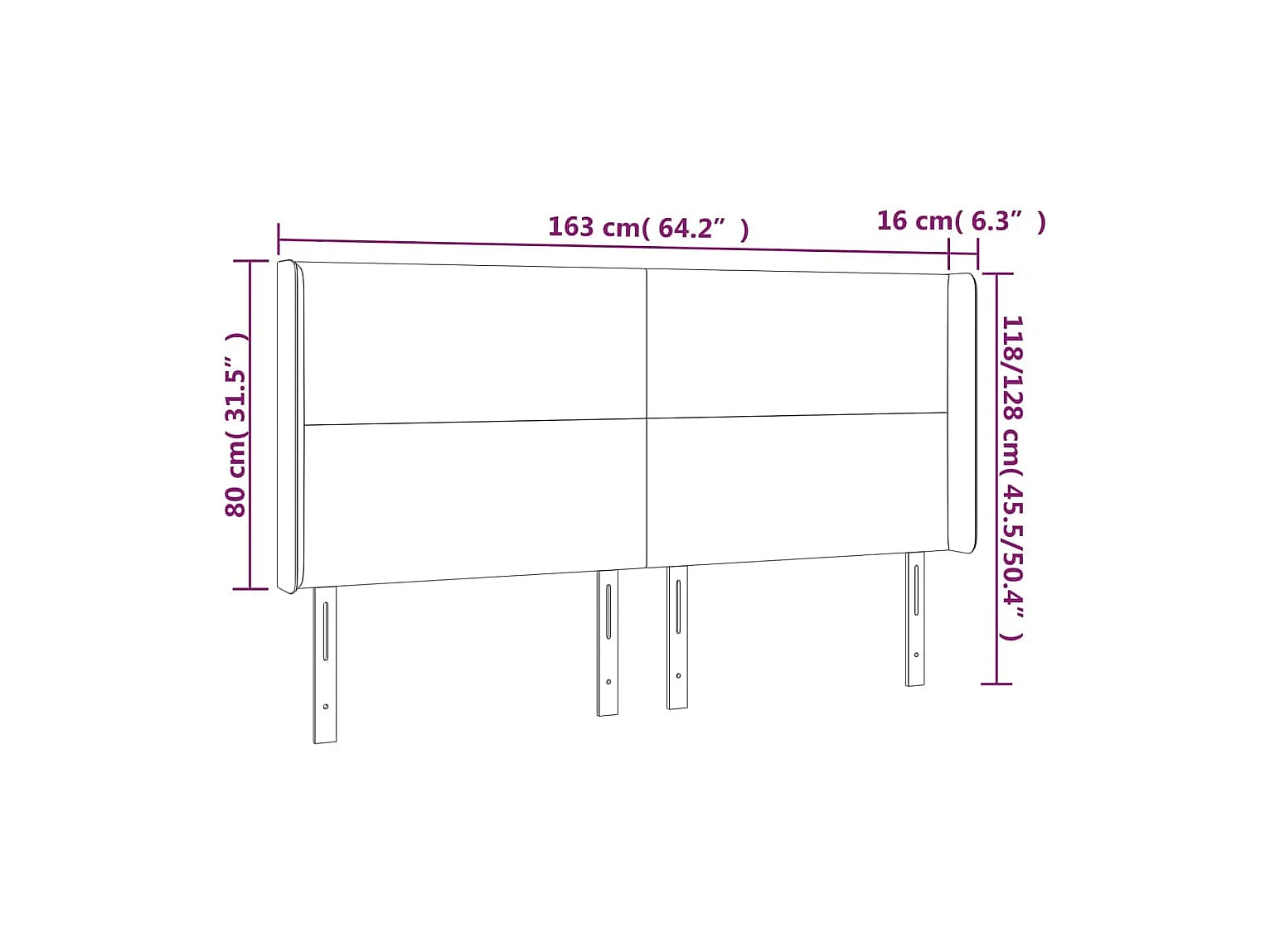 Cabecero | Cabezal de Cama | Mueble cabecero con orejas de tela marrón oscuro 163x16x118/128 cm