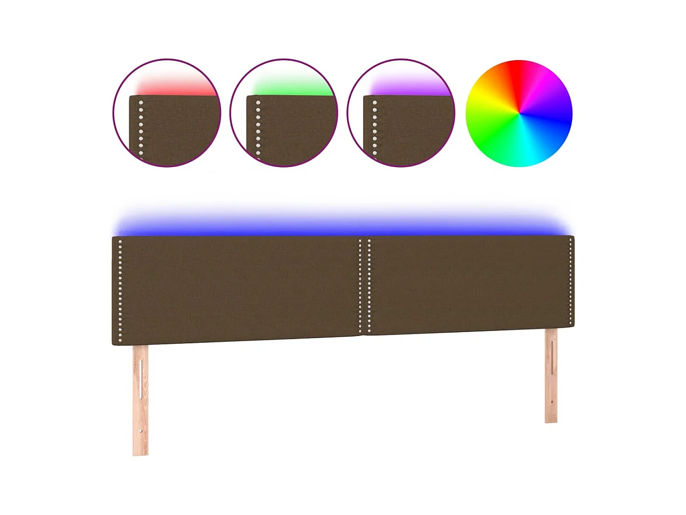 Mueble cabecero | Cabezal de cama | Cabecero con LED de tela marrón oscuro 180x5x78/88 cm