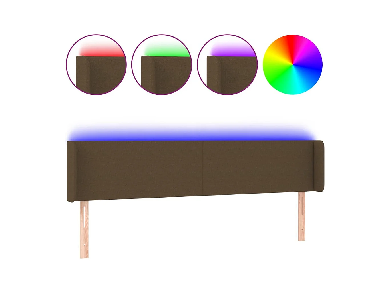 Mueble cabecero | Cabezal de cama | Cabecero con LED de tela marrón oscuro 203x16x78/88 cm