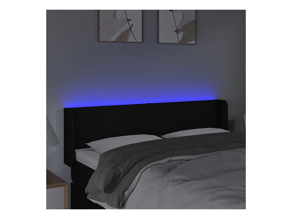Mueble cabecero | Cabezal de cama | Cabecero con LED de tela negro 147x16x78/88 cm