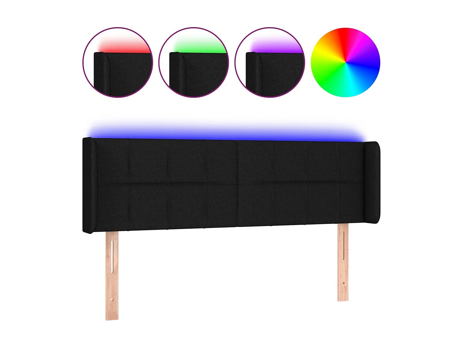 Mueble cabecero | Cabezal de cama | Cabecero con LED de tela negro 147x16x78/88 cm