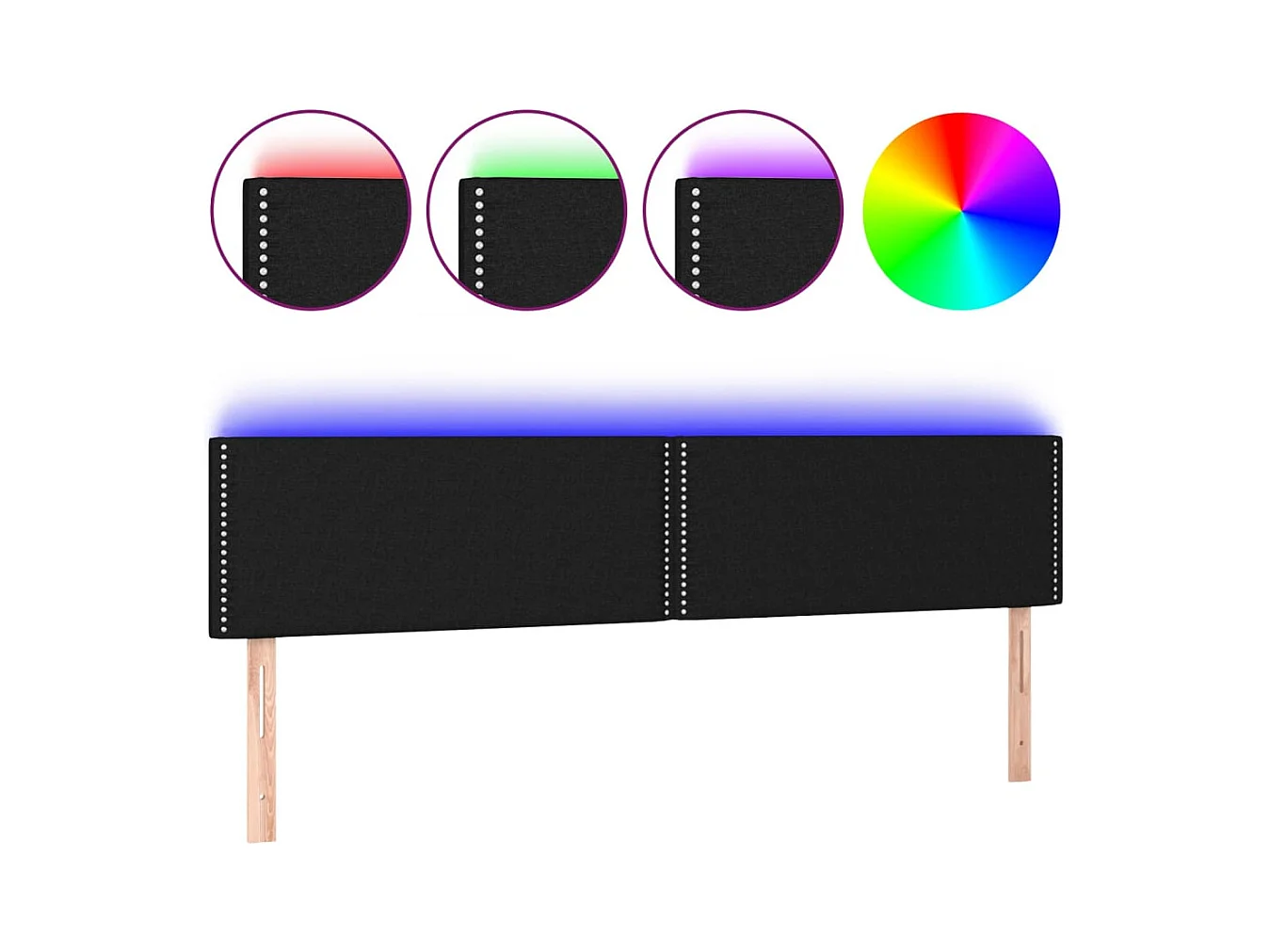 Mueble cabecero | Cabezal de cama | Cabecero con LED de tela negro 160x5x78/88 cm