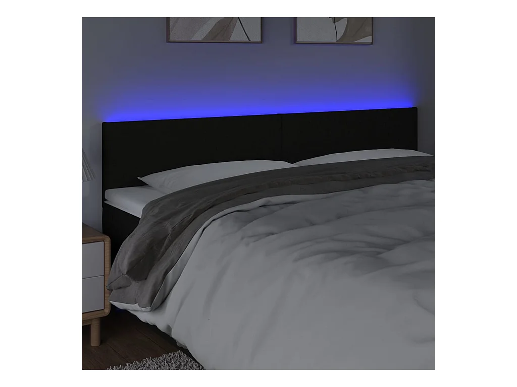 Mueble cabecero | Cabezal de cama | Cabecero con LED de tela negro 160x5x78/88 cm