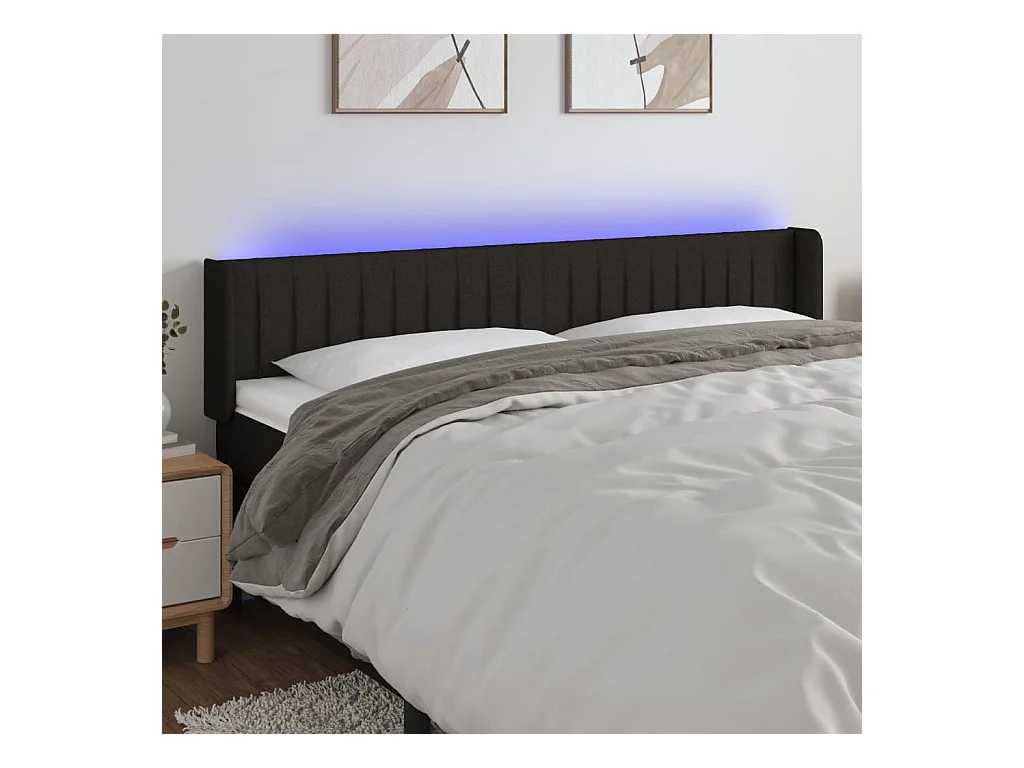 Mueble cabecero | Cabezal de cama | Cabecero con LED de tela negro 183x16x78/88 cm