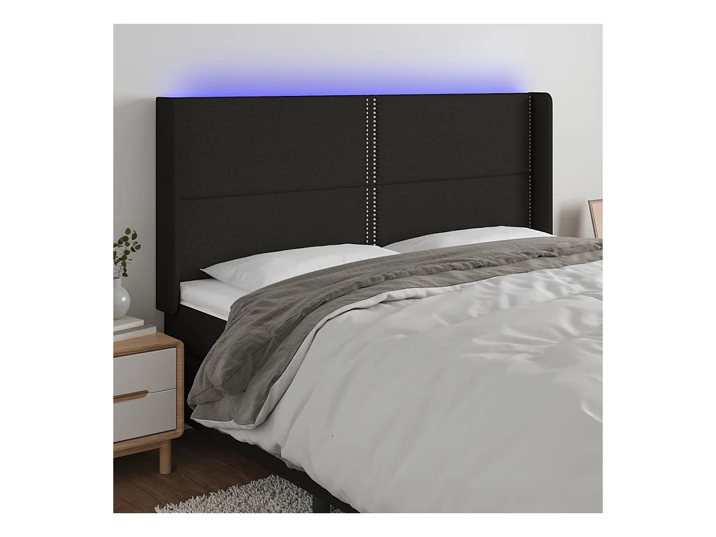 Mueble cabecero | Cabezal de cama | Cabecero con LED de tela negro 203x16x118/128 cm