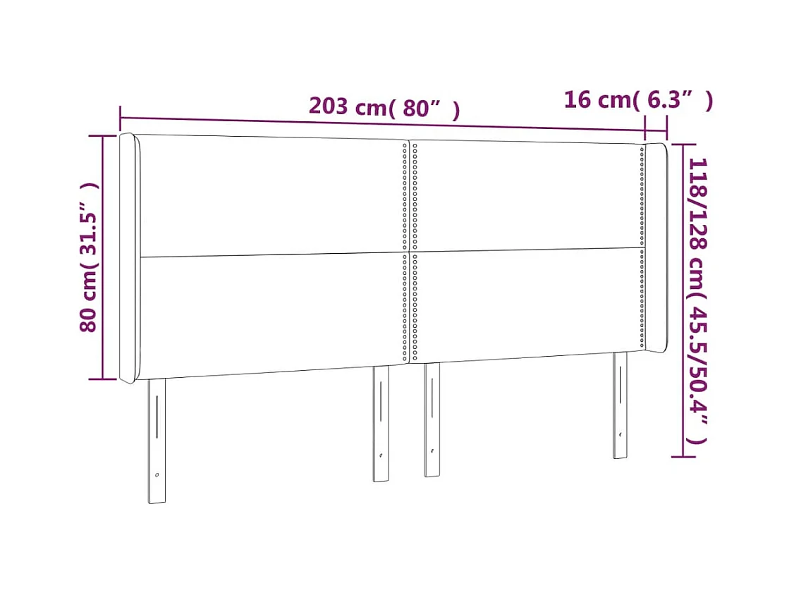 Cabecero | Cabezal de Cama | Mueble cabecero con orejas de cuero sintético negro 203x16x118/128 cm