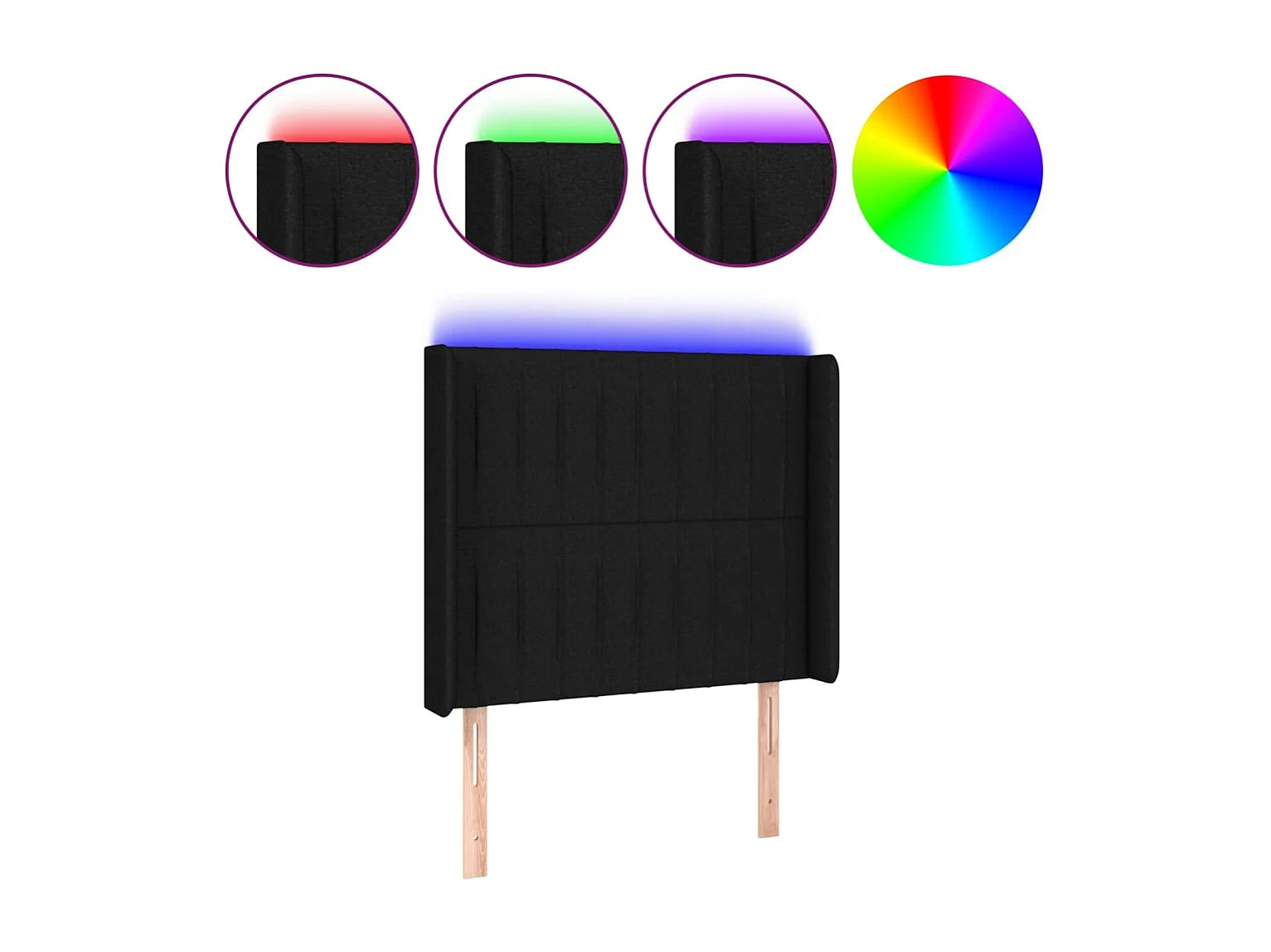Mueble cabecero | Cabezal de cama | Cabecero con LED de tela negro 93x16x118/128 cm