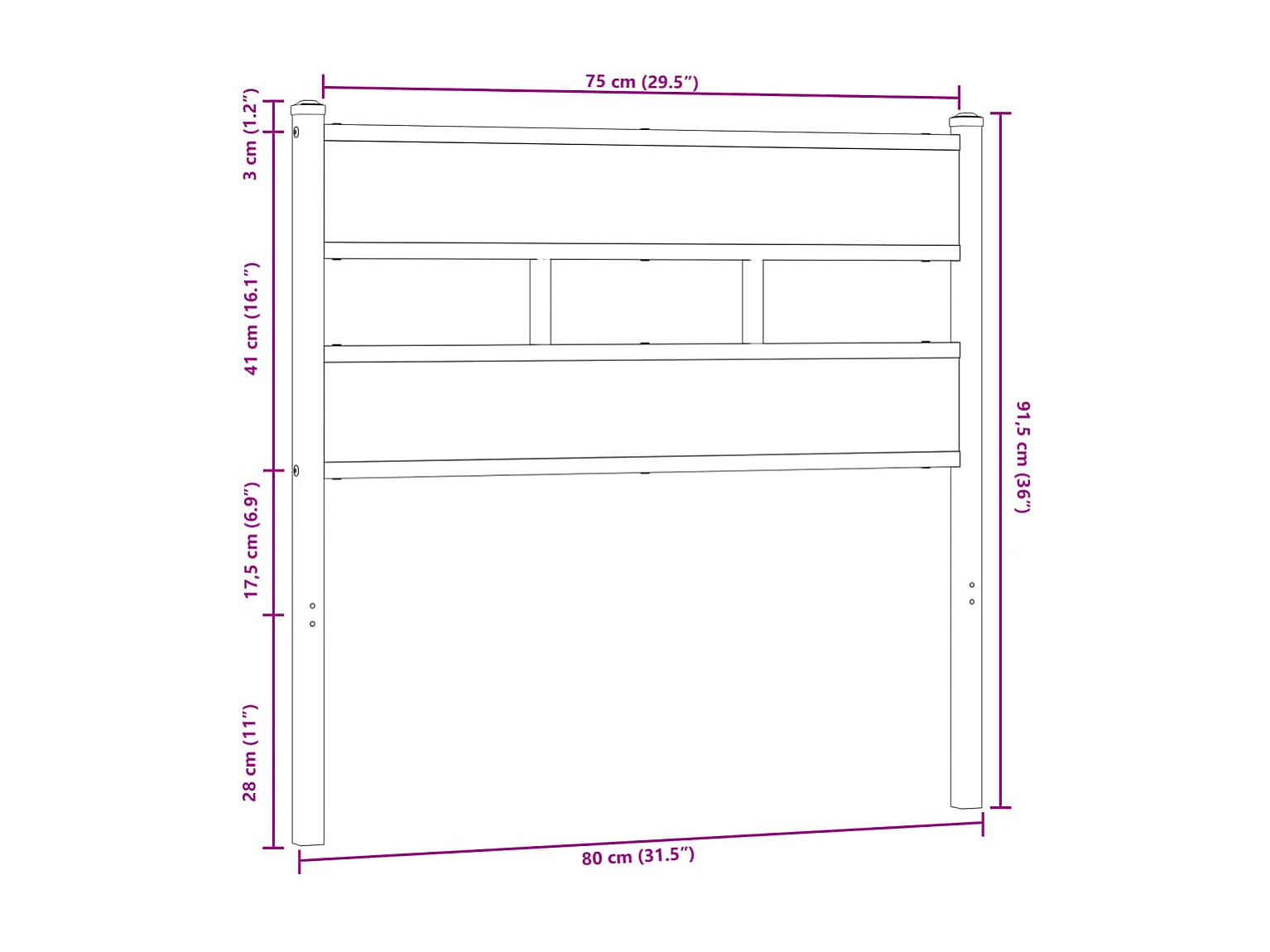 Mueble cabecero | Cabezal de cama | Cabecero de acero y madera de ingeniería marrón roble 75 cm