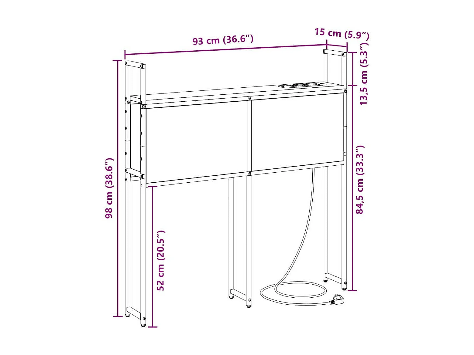 Mueble cabecero | Cabezal de cama | Cabecero de Almacenamiento con Estación de Carga Gris sonoma