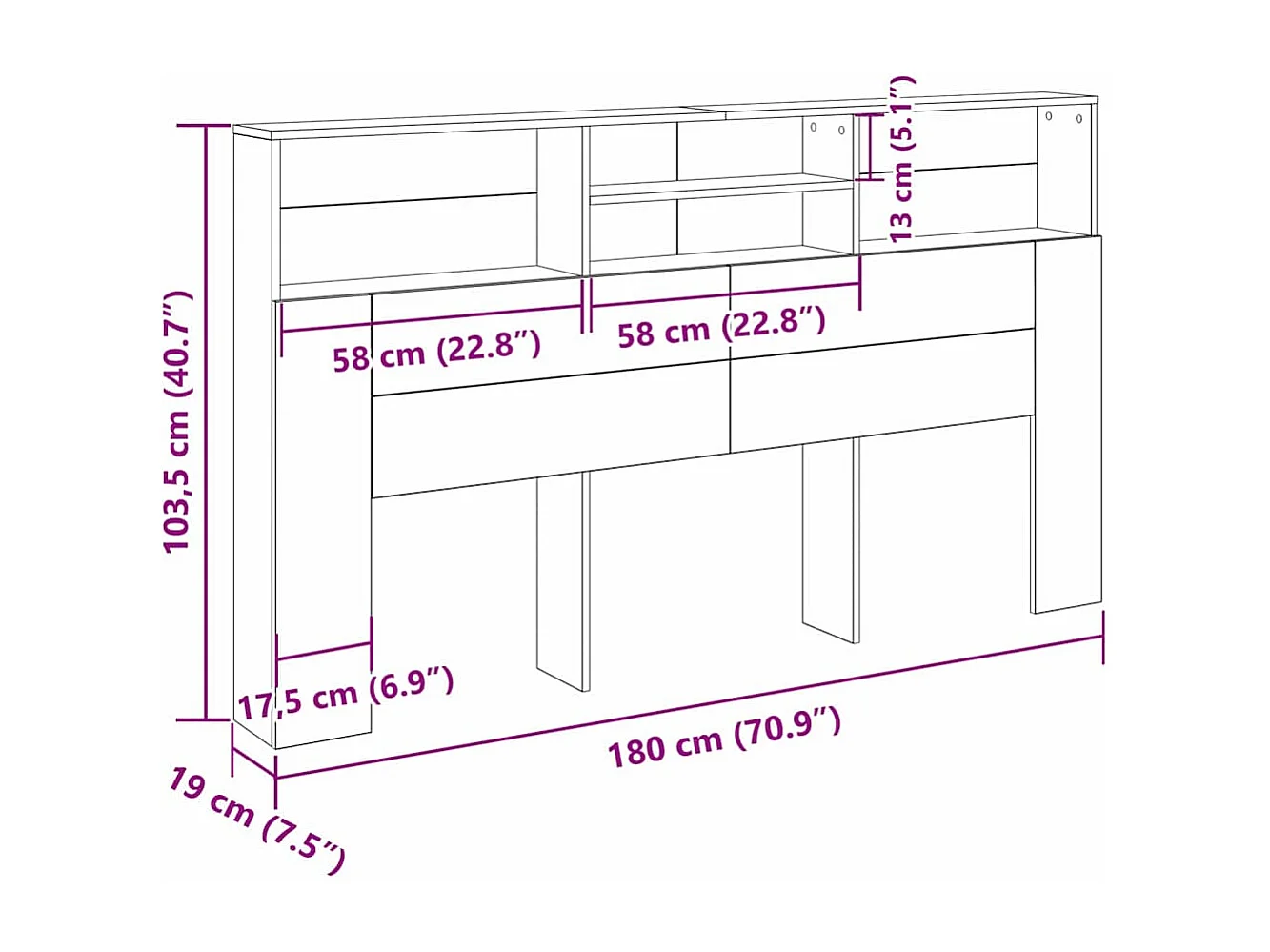 Mueble cabecero | Cabezal de cama | Cabecero de armario con estante Roble negro 180 x 19 x 103.5 cm
