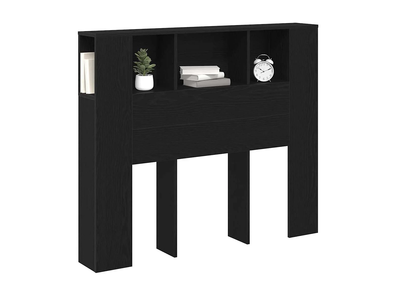 Mueble cabecero con almacenamiento | Cabecera de almacenamiento con estante Roble negro 120 cm