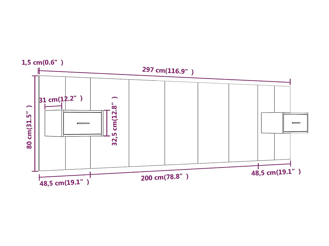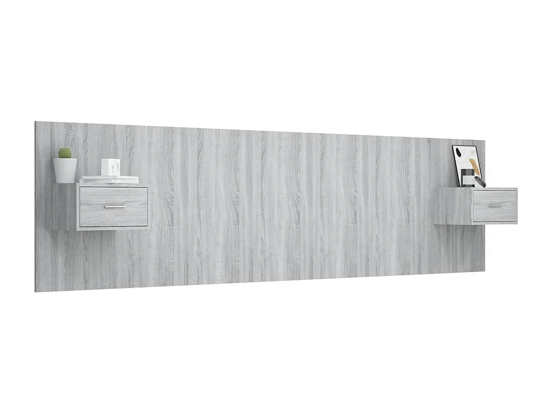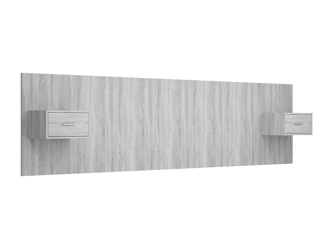 Mueble cabecero | Cabezal de cama | Cabecero de cama y mesitas madera contrachapada gris Sonoma