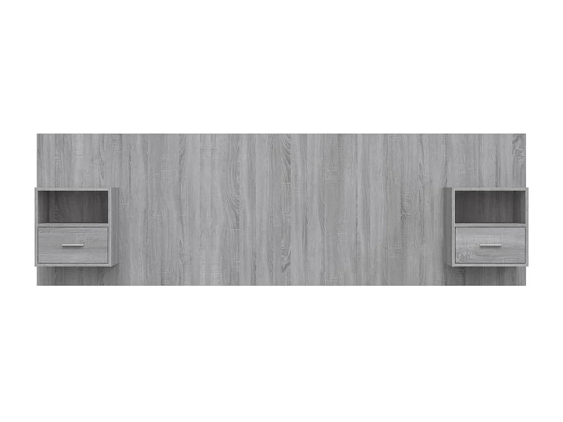 Mueble cabecero | Cabezal de cama | Cabecero de cama y mesitas madera contrachapada gris Sonoma