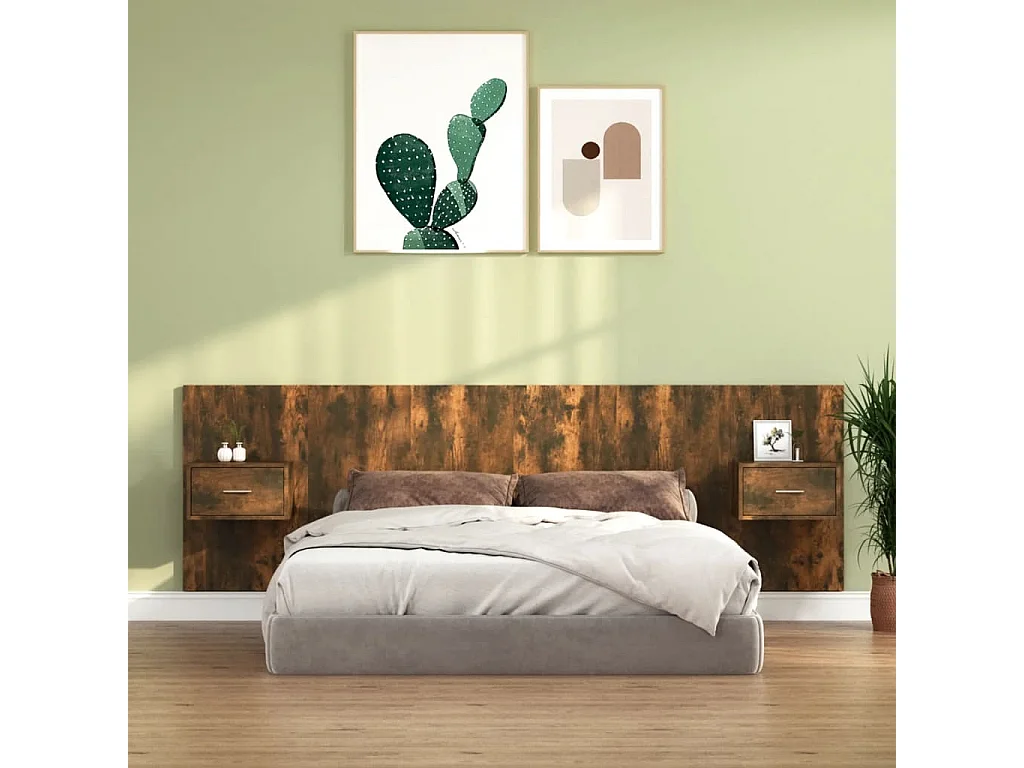 Mueble cabecero | Cabezal de cama | Cabecero de cama y mesitas madera contrachapada roble ahumado