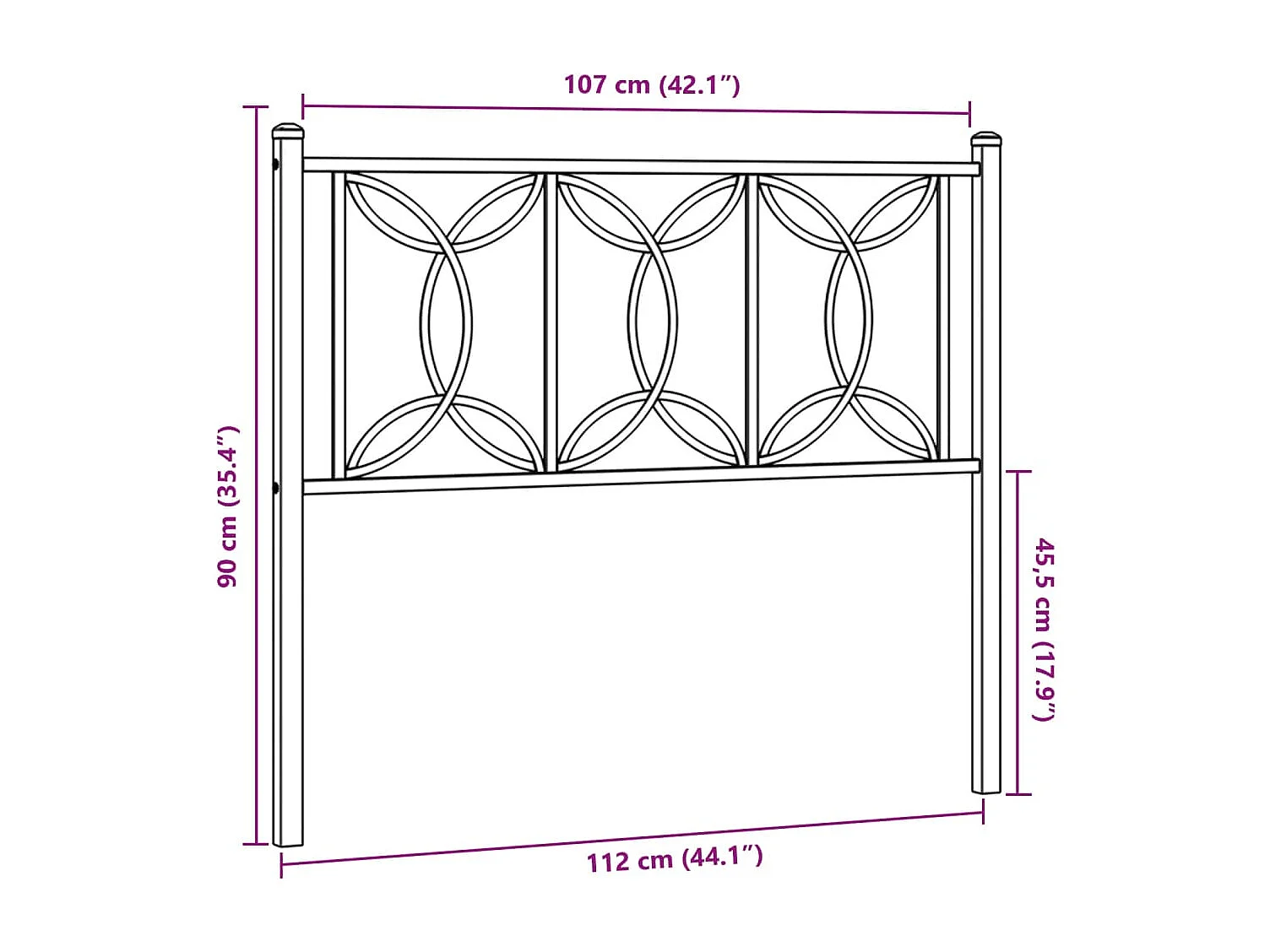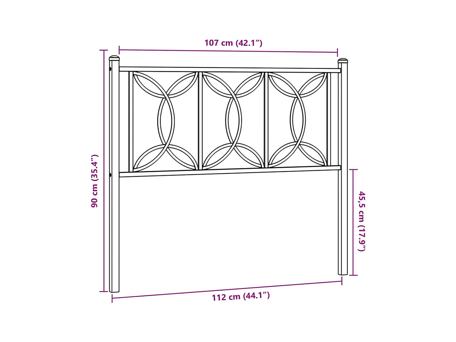 Mueble cabecero | Cabezal de cama | Cabecero de metal negro 107 cm