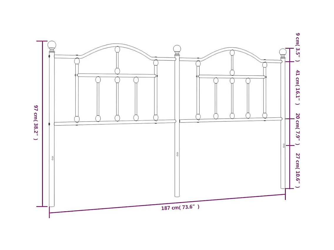 Mueble cabecero | Cabezal de cama | Cabecero de metal negro 193 cm