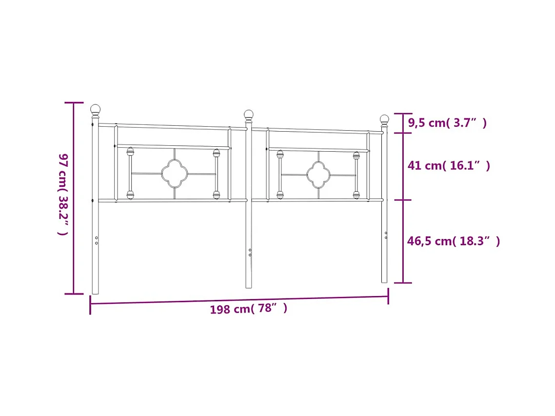 Mueble cabecero | Cabezal de cama | Cabecero de metal negro 193 cm