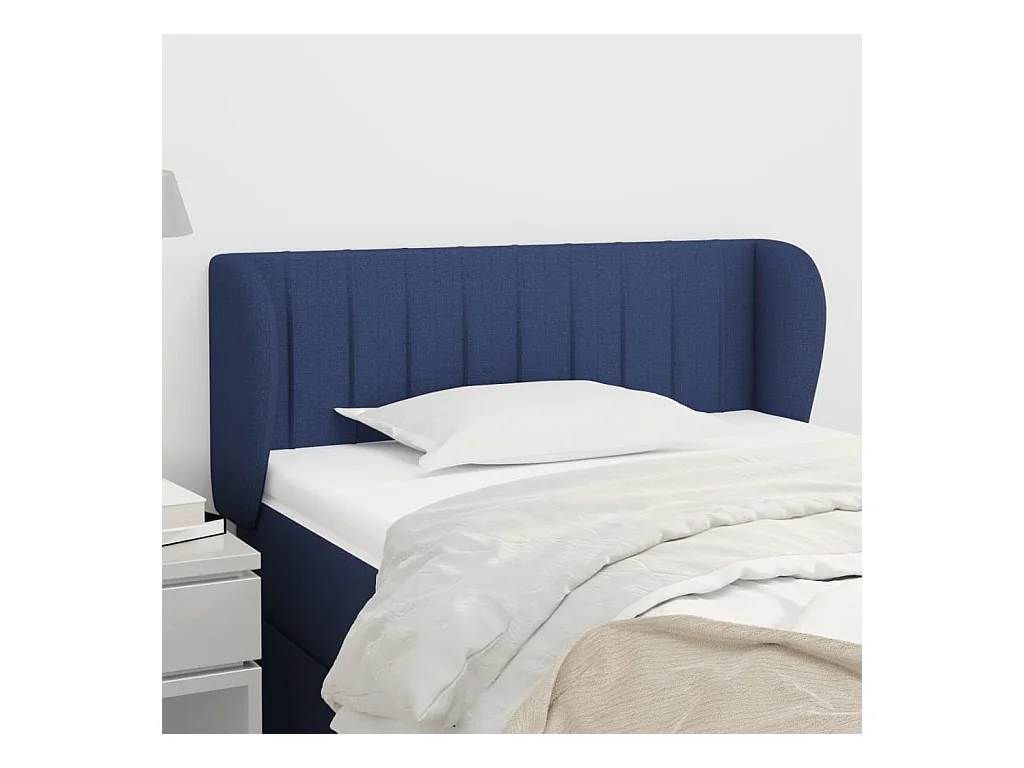 Cabecero | Cabezal de Cama | Mueble cabecero con orejas de tela azul 103x23x118/128 cm