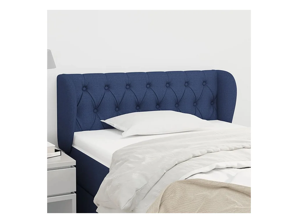 Cabecero | Cabezal de Cama | Mueble cabecero con orejas de tela azul 103x23x118/128 cm