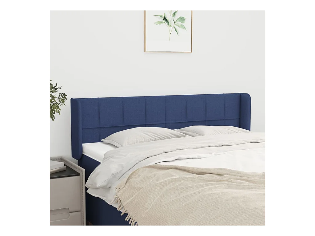 Mueble cabecero | Cabezal de cama | Cabecero de tela azul 147x16x78/88 cm