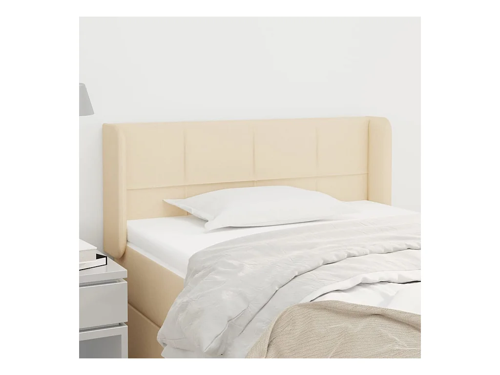 Cabecero | Cabezal de Cama | Mueble cabecero con orejas de tela color crema 93x16x118/128 cm