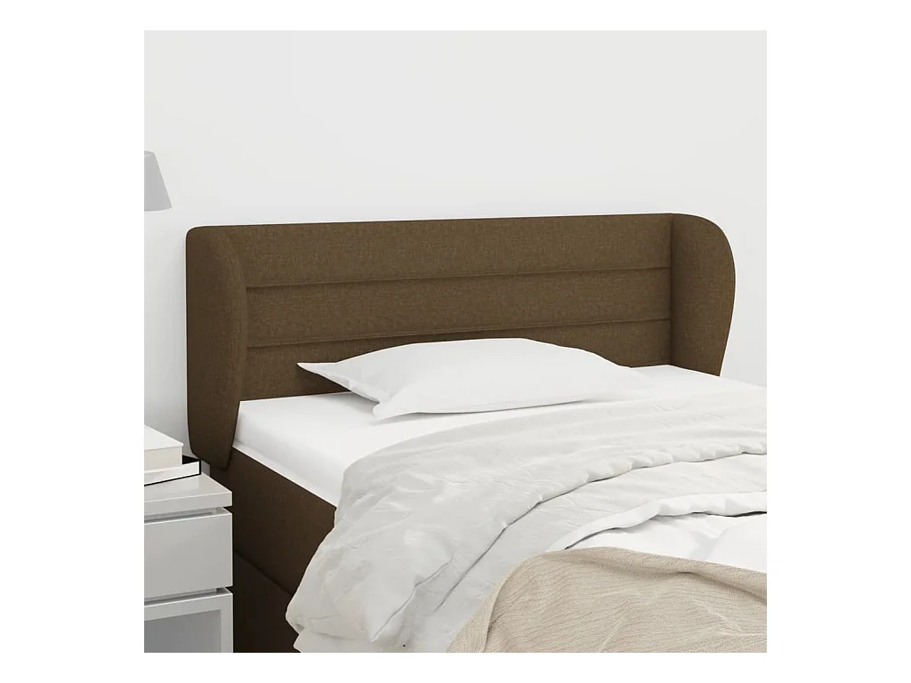 Mueble cabecero | Cabezal de cama | Cabecero con LED de tela marrón oscuro 103x16x78/88 cm