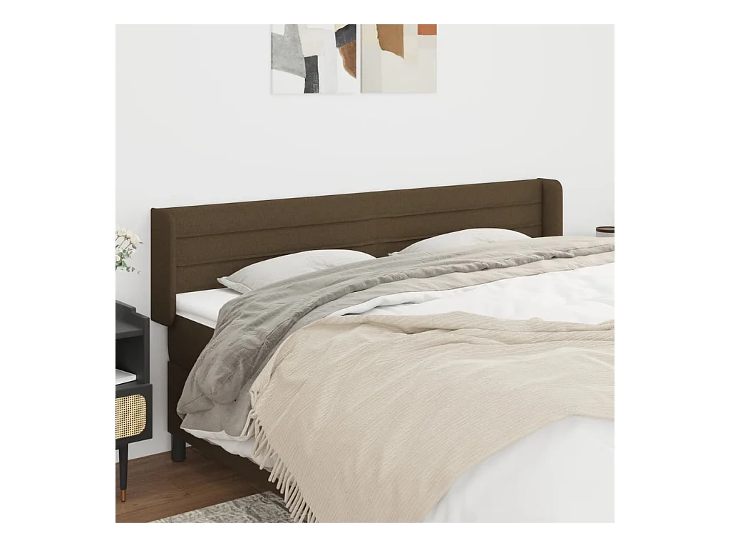 Mueble cabecero | Cabezal de cama | Cabecero con LED de tela marrón oscuro 183x16x78/88 cm