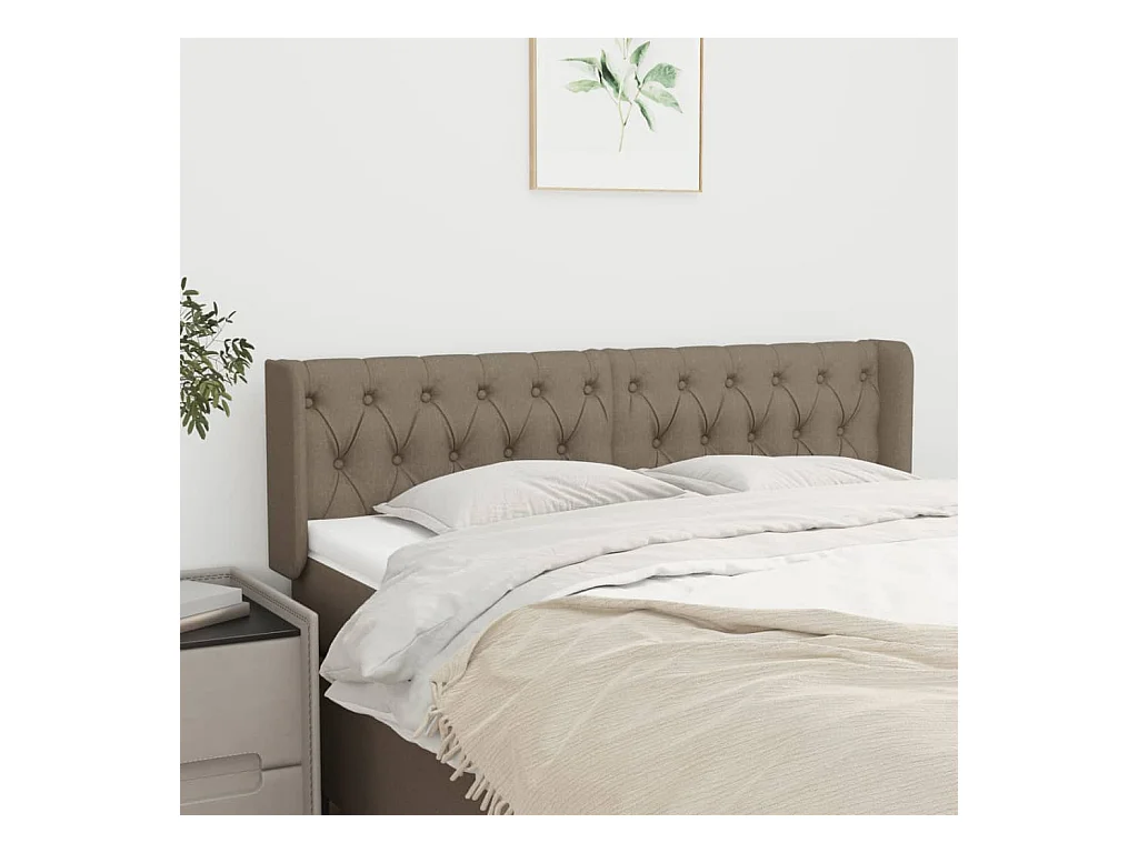 Cabecero | Cabezal de Cama | Mueble cabecero con orejas de tela gris taupe 163x16x118/128 cm