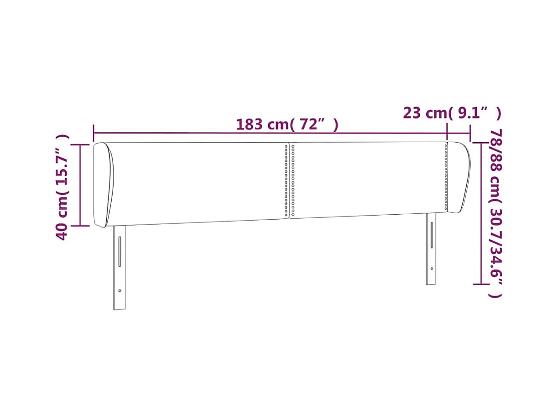 Cabecero | Cabezal de Cama | Mueble cabecero con orejas de tela marrón oscuro 183x23x118/128 cm