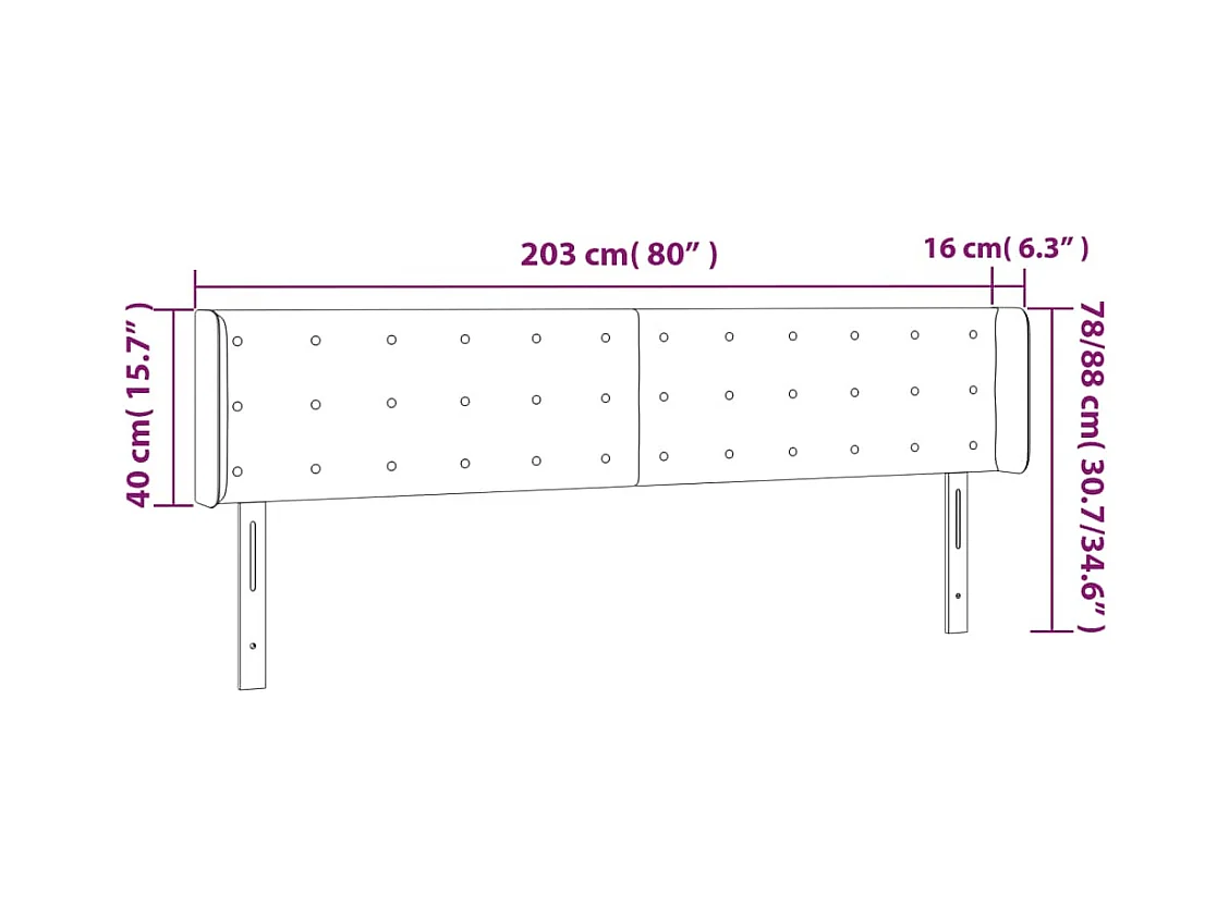 Mueble cabecero | Cabezal de cama | Cabecero de tela negro 203x16x78/88 cm