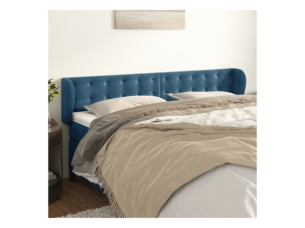 Cabecero | Cabezal de Cama | Mueble cabecero con orejas de terciopelo azul oscuro 183x23x118/128 cm