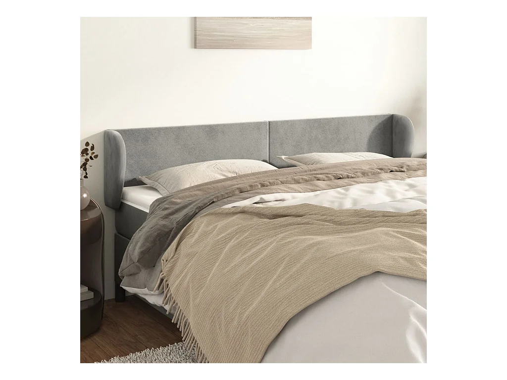 Mueble cabecero | Cabezal de cama | Cabecero de terciopelo gris claro 203x23x78/88 cm