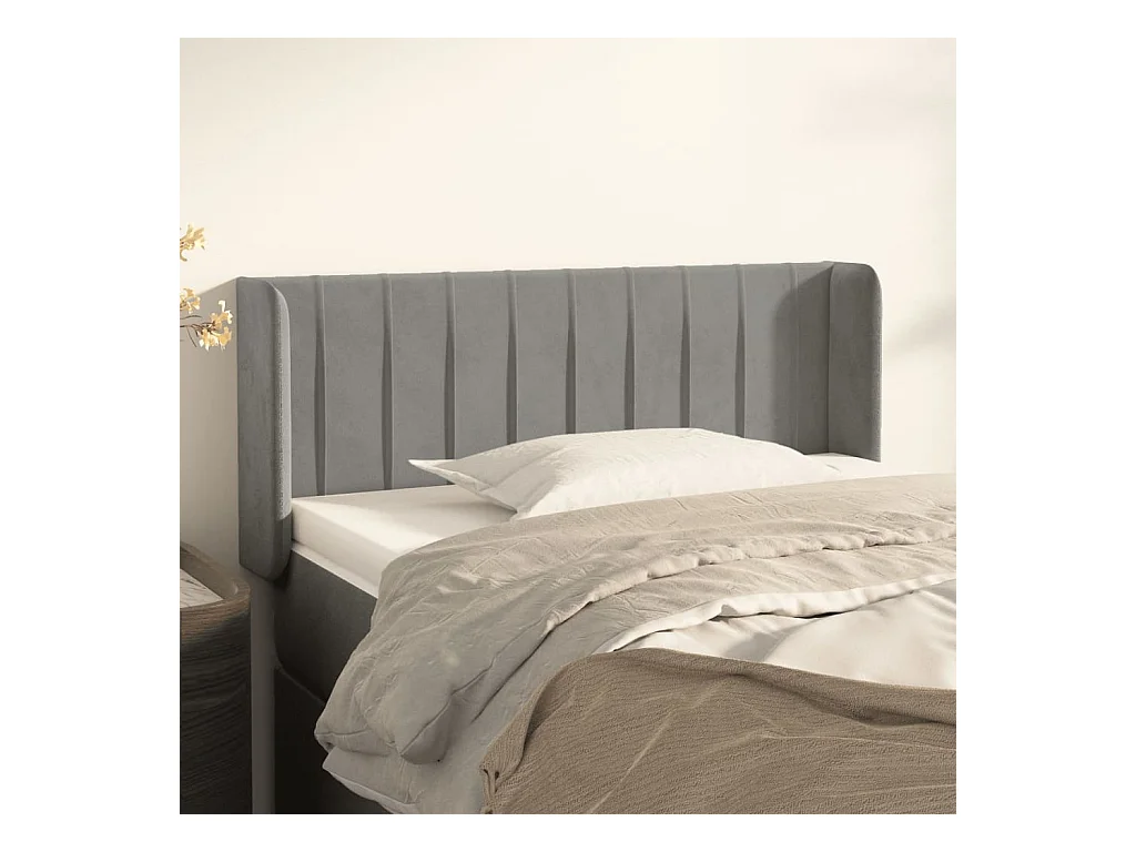 Mueble cabecero | Cabezal de cama | Cabecero de terciopelo gris claro 83x16x78/88 cm