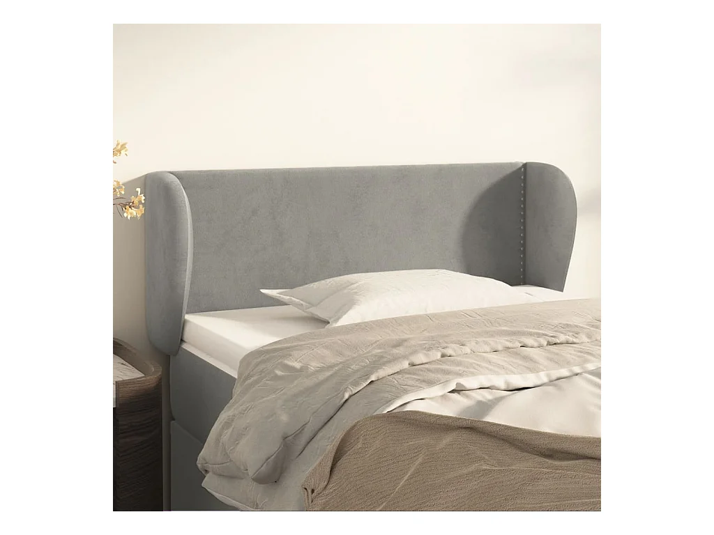 Cabecero | Cabezal de Cama | Mueble cabecero con orejas de terciopelo gris claro 93x23x118/128 cm