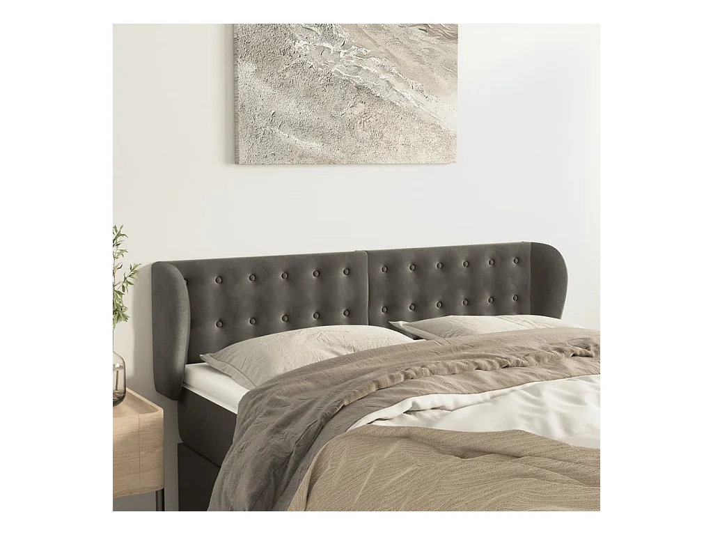 Mueble cabecero | Cabezal de cama | Cabecero de terciopelo gris oscuro 147x23x78/88 cm
