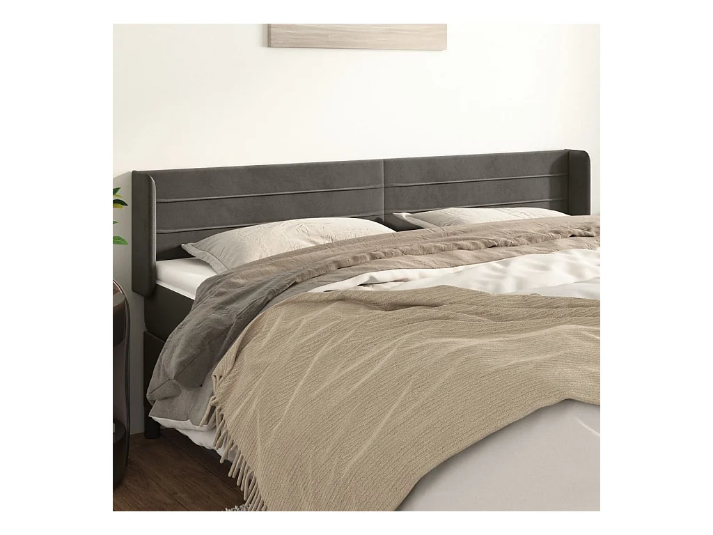 Mueble cabecero | Cabezal de cama | Cabecero de terciopelo gris oscuro 203x16x78/88 cm
