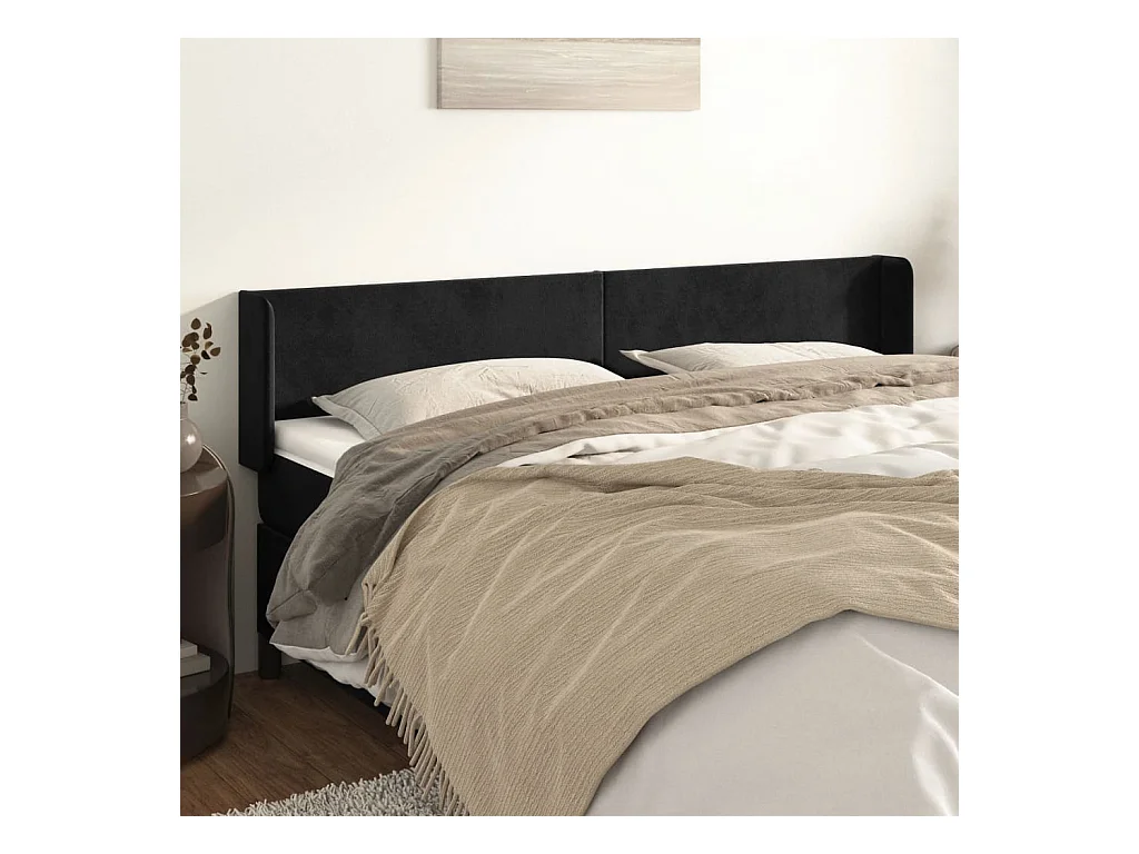 Mueble cabecero | Cabezal de cama | Cabecero de terciopelo negro 203x16x78/88 cm