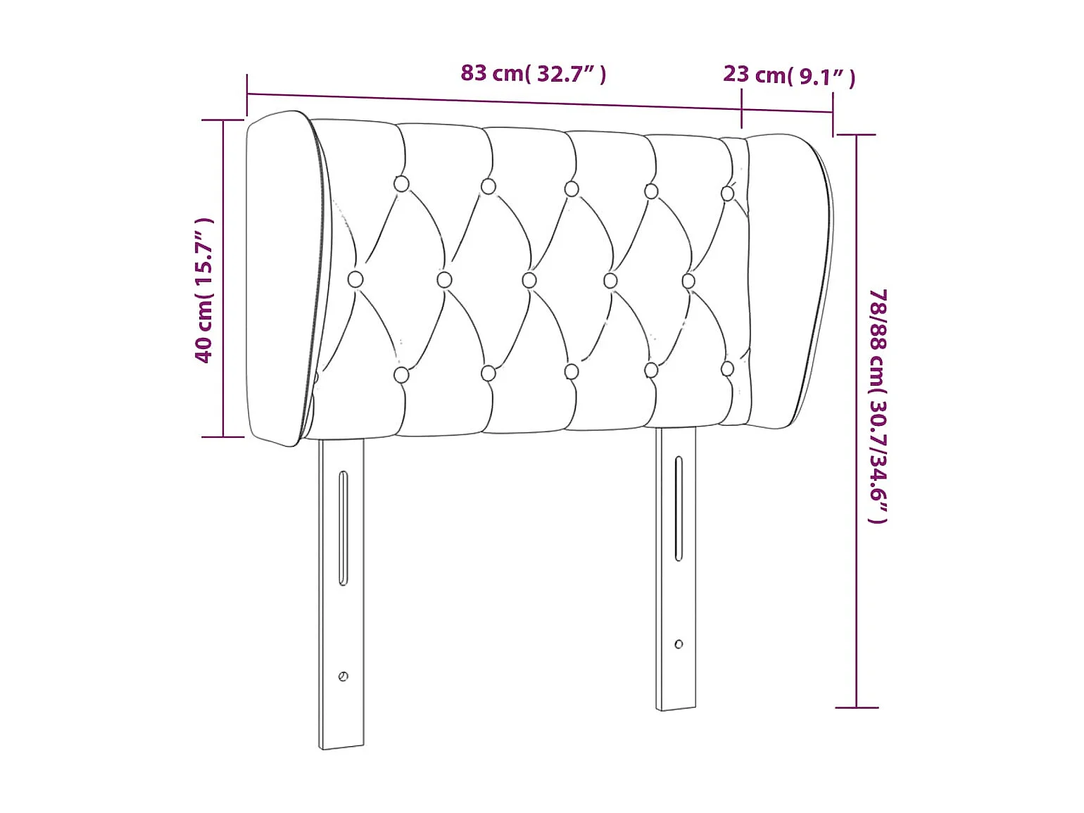 Cabecero | Cabezal de Cama | Mueble cabecero con orejas de terciopelo negro 83x23x118/128 cm
