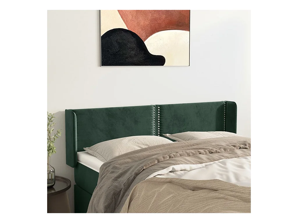 Mueble cabecero | Cabezal de cama | Cabecero de terciopelo verde oscuro 147x23x78/88 cm