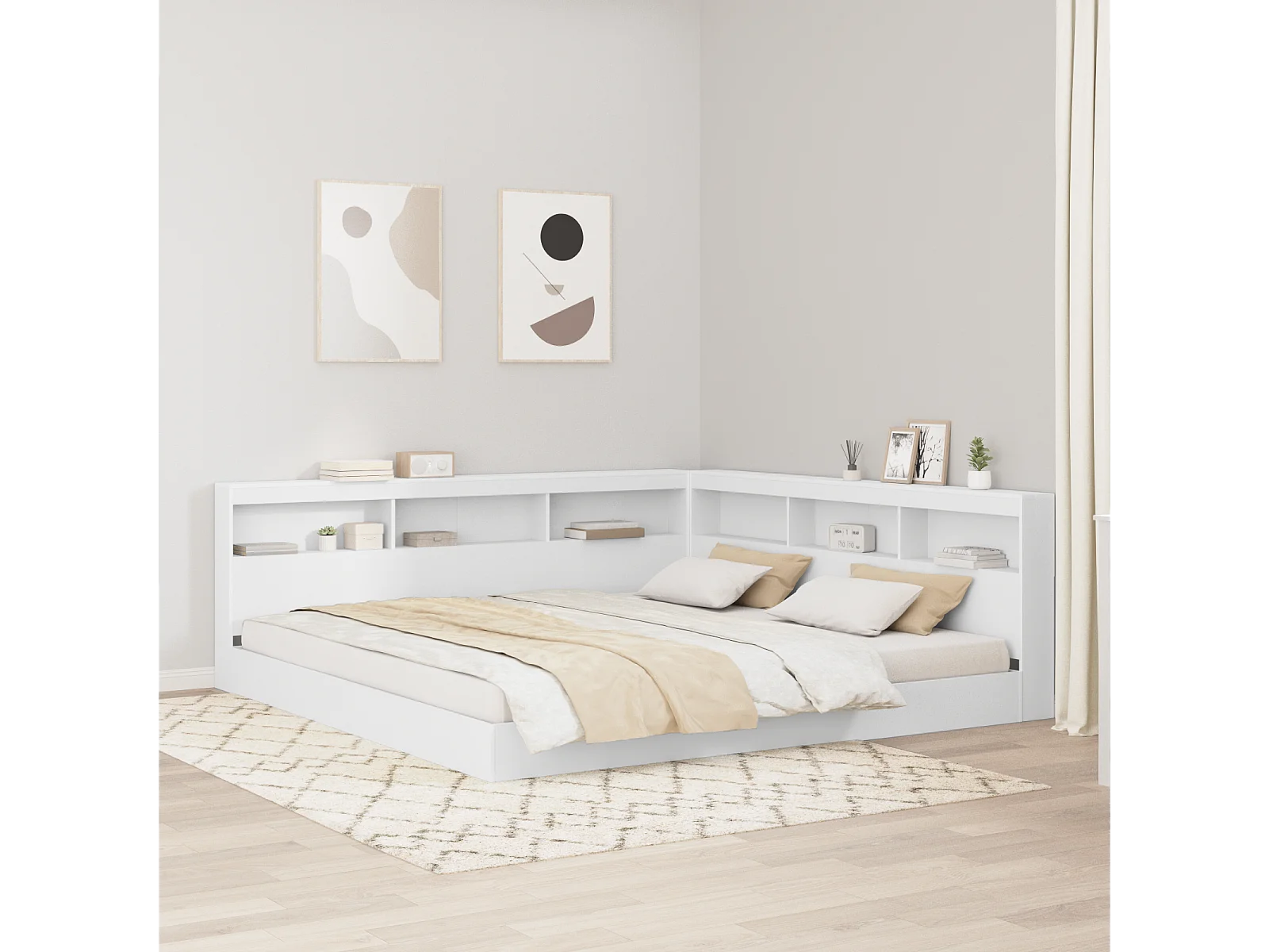 Mueble cabecero con almacenamiento | Cabecera de almacenamiento Blanco 200 cm Madera contrachapada