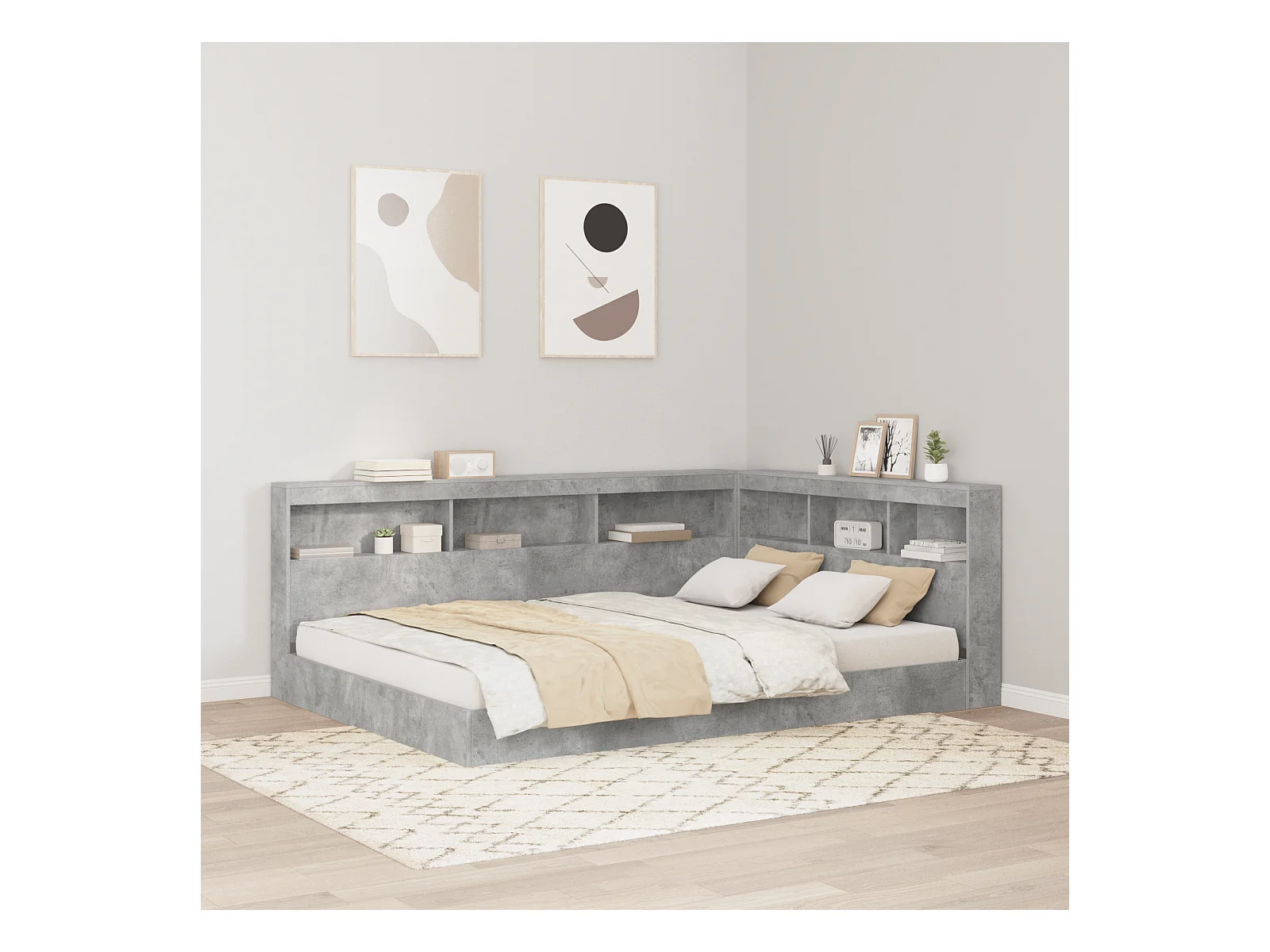 Mueble cabecero con almacenamiento | Cabecera de almacenamiento con estante Gris hormigón 135 cm