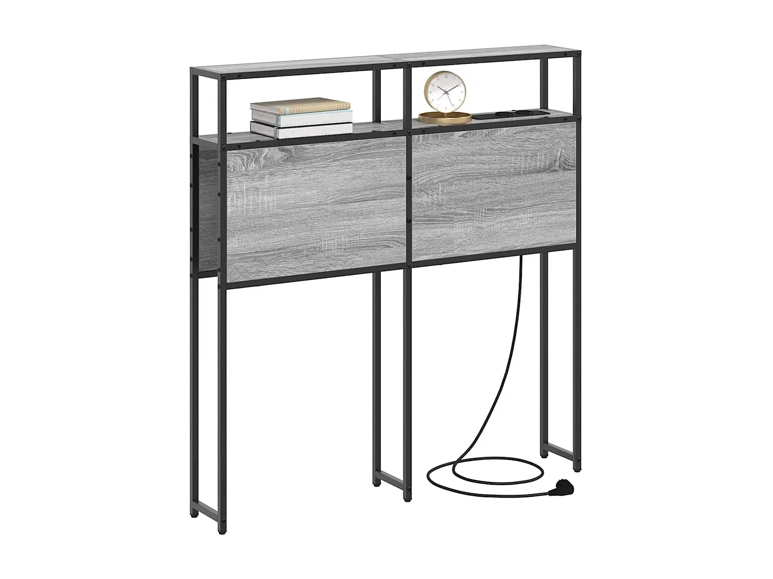 Mueble cabecero | Cabezal de cama | Cabecero de Almacenamiento con Estación de Carga Gris sonoma