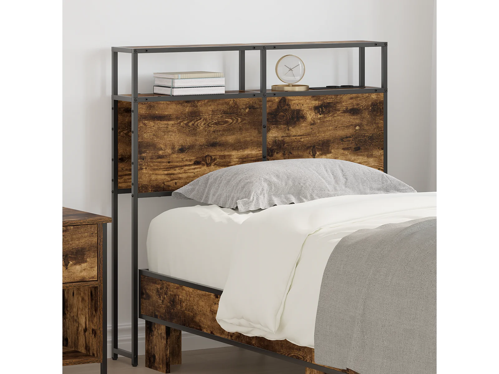 Mueble cabecero con almacenamiento | Cabecera de almacenamiento con estante Roble ahumado 100 cm