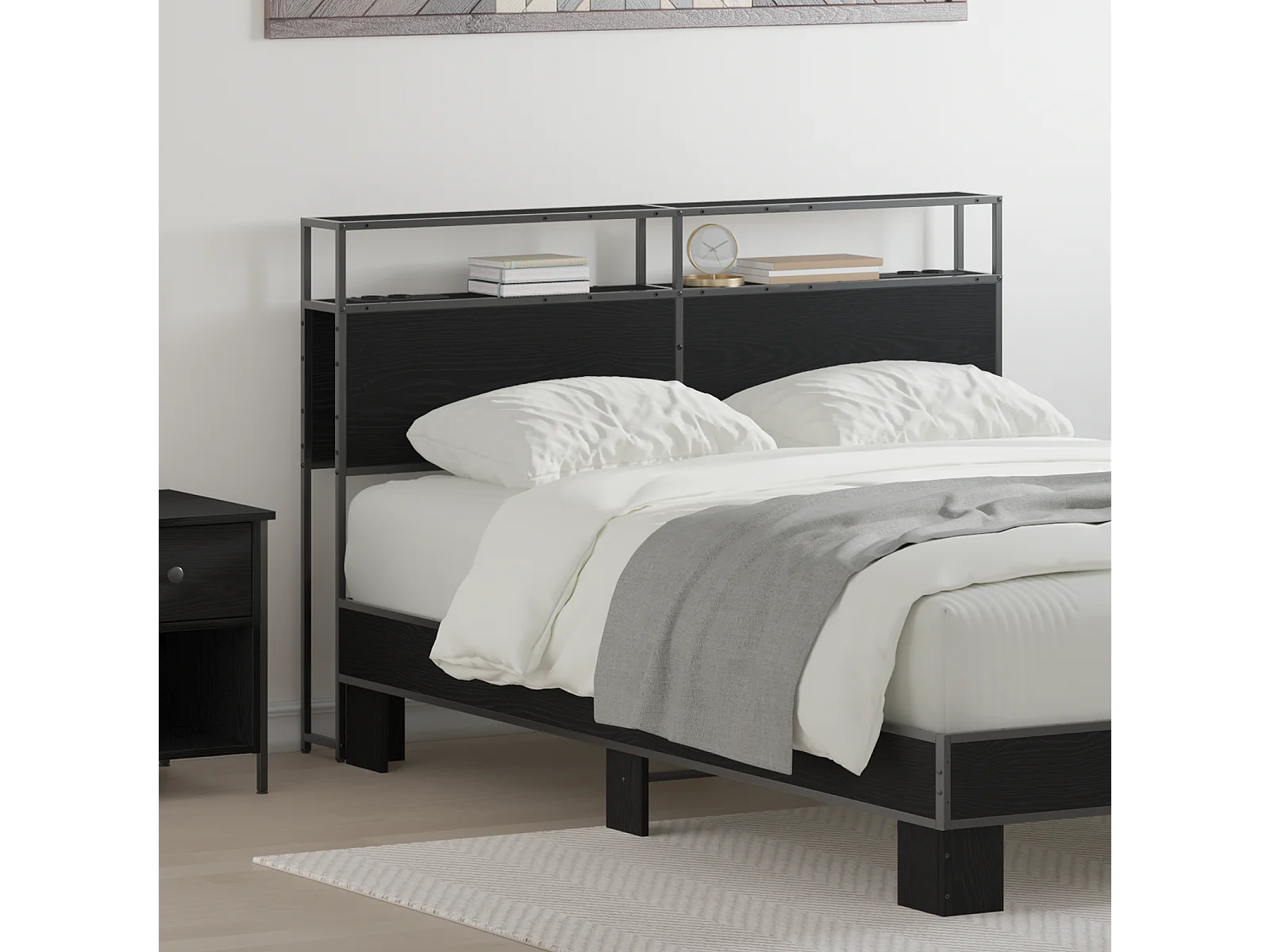 Mueble cabecero | Cabezal de cama | Cabecero de Almacenamiento con Estación de Carga Roble negro