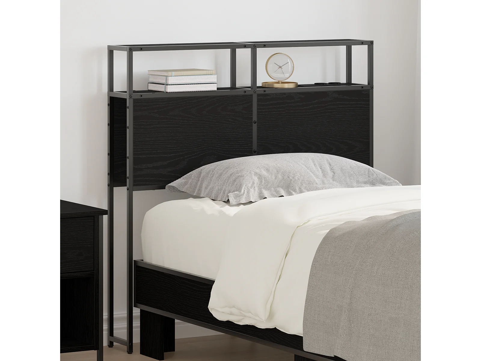 Mueble cabecero con almacenamiento | Cabecera de almacenamiento con estante Roble negro 90 cm