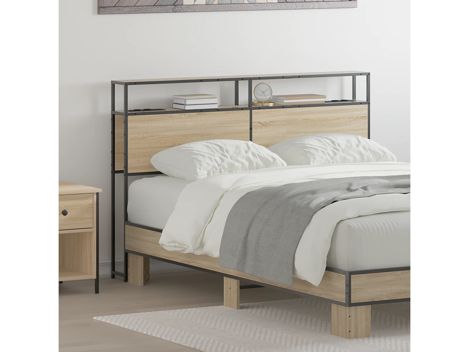Mueble cabecero | Cabezal de cama | Cabecero de Almacenamiento con Estación de Carga Roble Sonoma
