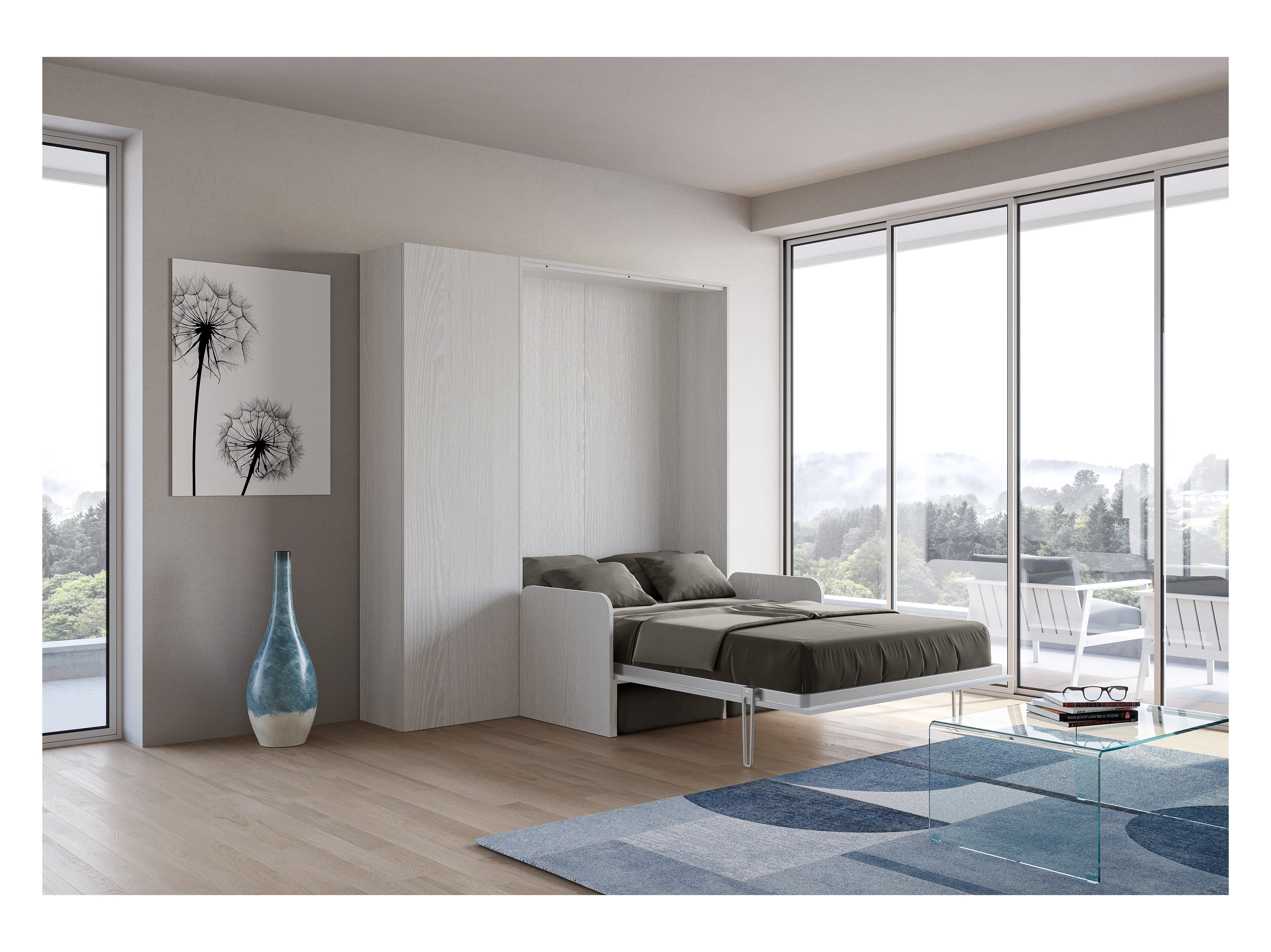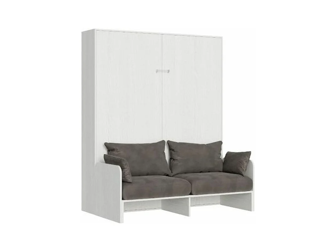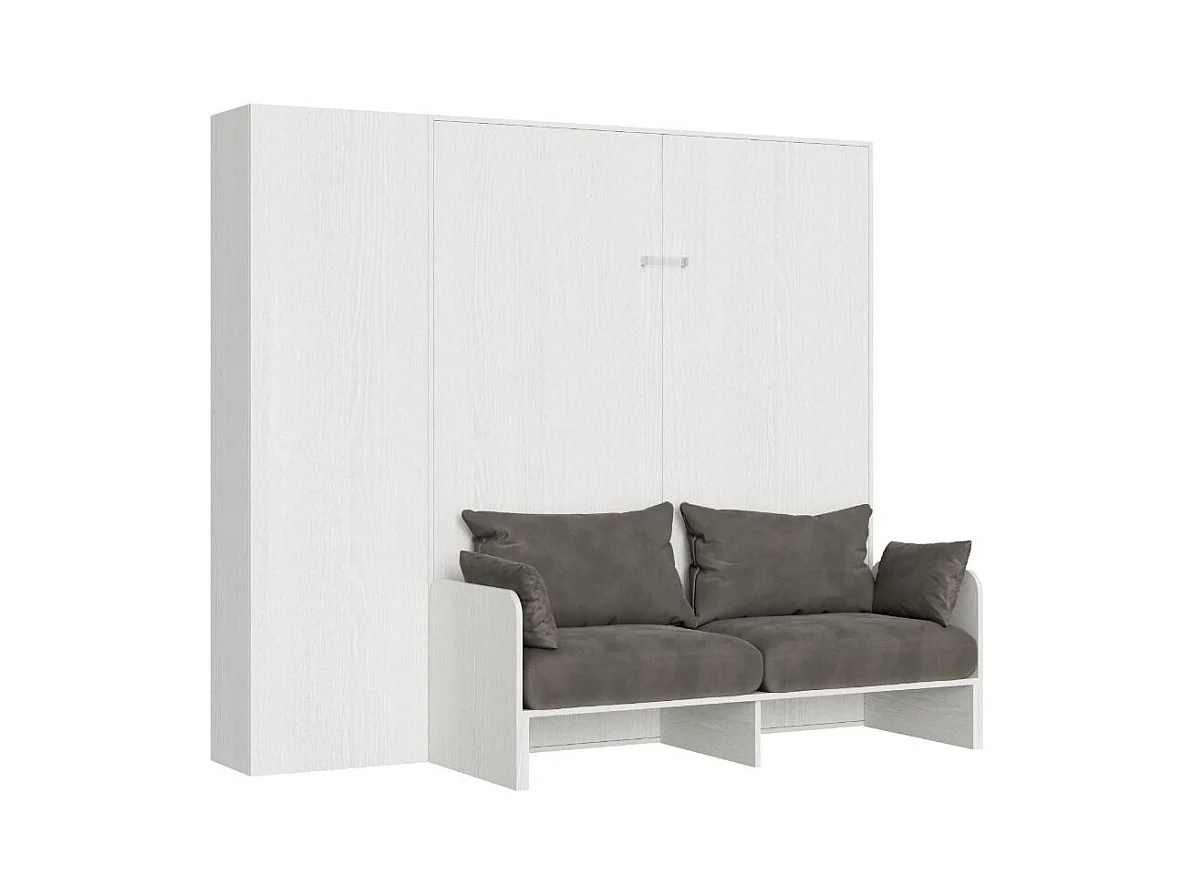 Mueble cama 160x190 cm con sofá y columna de almacenamiento de madera blanca Kanto-Color Microfibra 16