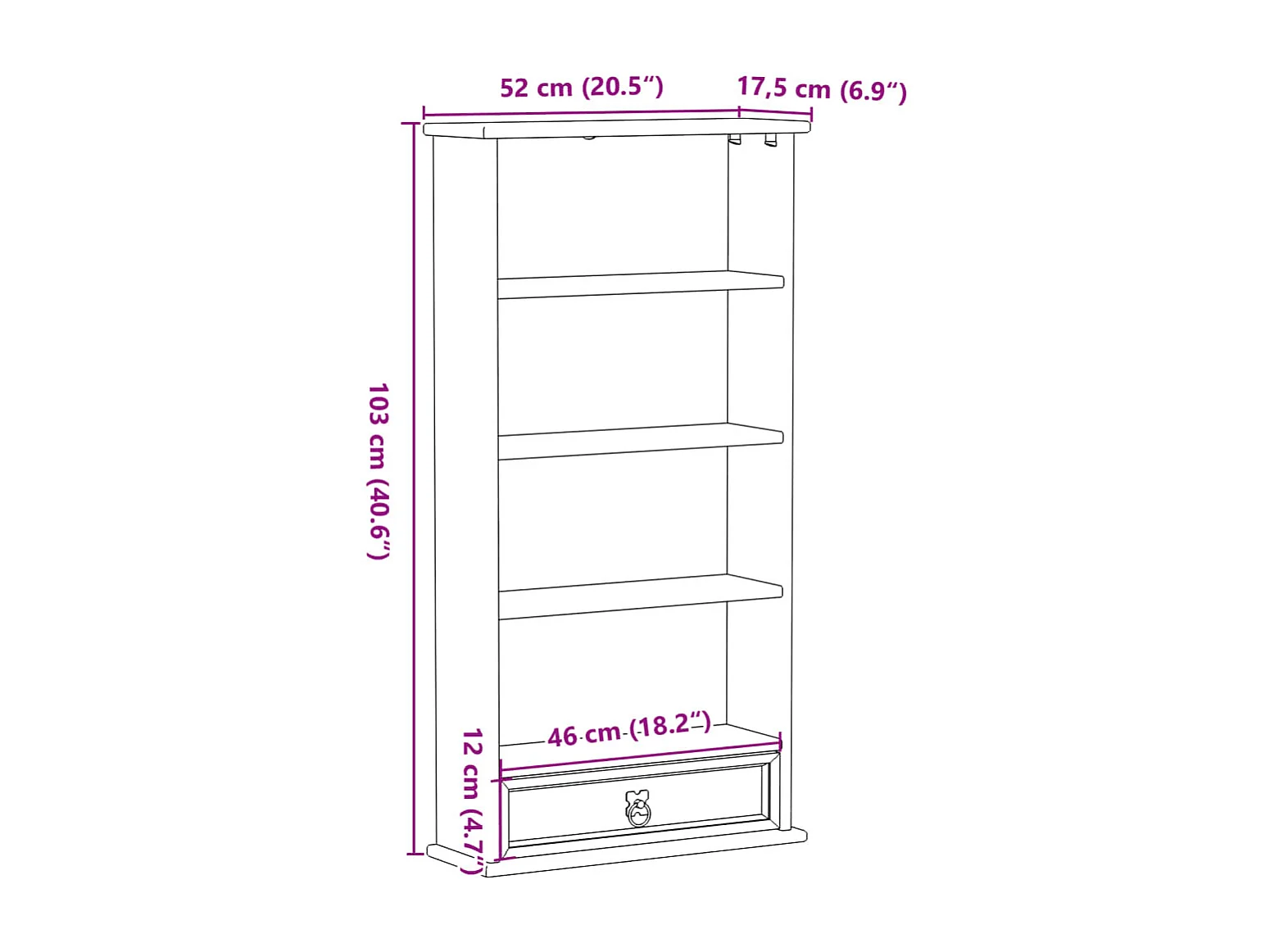 Mueble CD Corona 52x17,5x103 cm madera maciza de pino