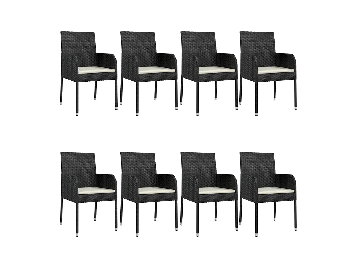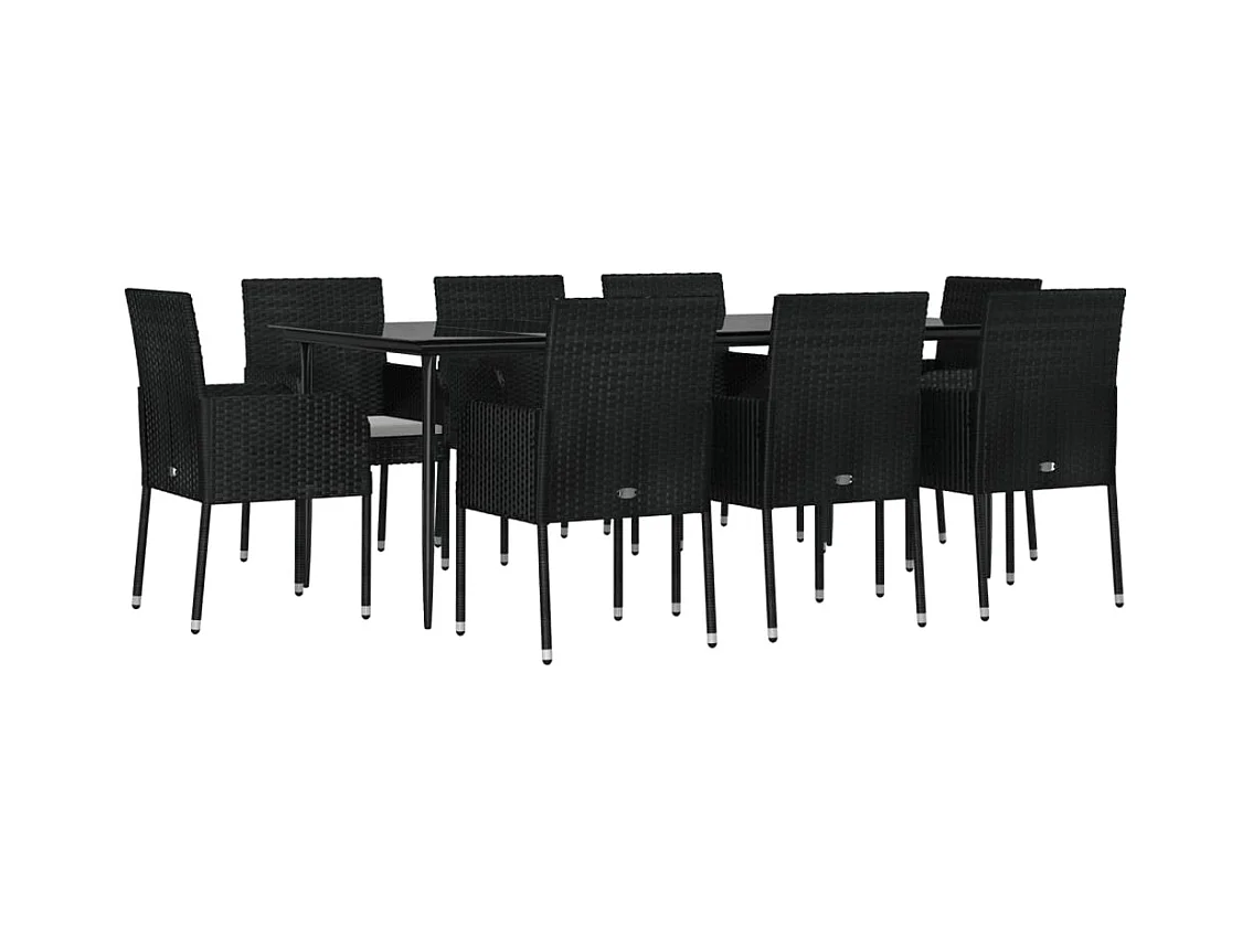 Mueble comedor de jardín de 9 piezas y cojines de resina tejida en negro 02_0014835